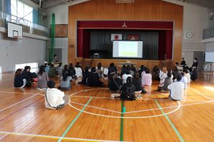 ・6年生の「がんぴ」についての発表が素晴らしかったです。まとめ方や発表がさすが6年生だなあと感心しました。「がんぴ」の原料の調達、後継者がいないなど課題がいろいろあることは、中島に住んでいても知らないことばかりだったので勉強になりました。後、柿の発表も素晴らしかったです。