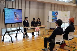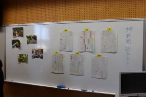 3年生は、春から継続して柿について観察、体験を行ってきたことをまとめてグループごとに発表していました。