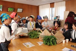 5年生は、お世話してくださった老人会の方にもきていただき、自分たちでにぎったおにぎりをふるまっていました。