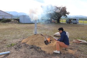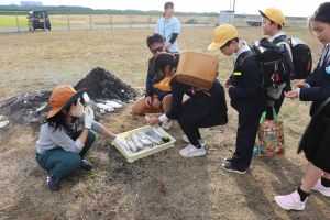 1.2年生が家に持ち帰り、学校で調理する分もよけてもまだたくさんあったので、焼き芋にして食べれないかと思い、地域の方に相談しました。