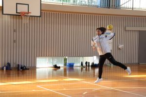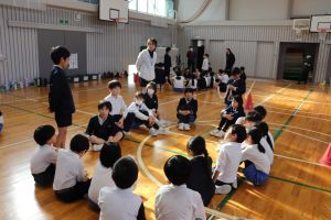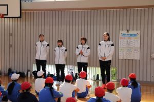 ハニービー石川所属の選手4人の方がきてくださり、4.5.6年生にルールやパス、シュートの仕方を教えてくださいました。