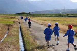 お互いに応援しあったり、保護者、地域方の大声援により、今年の持久走大会も無事終えることができました。