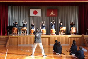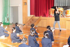 3年生は、授業参観にゲストティチャーできていただたい原田さんよる太鼓指導が始まりました。