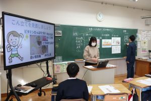 6年生は、家庭科で「栄養バランスを考えた献立を考えよう」の学習を中学校の中尾先生と行ってました。
