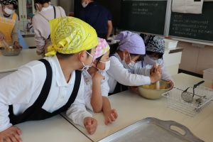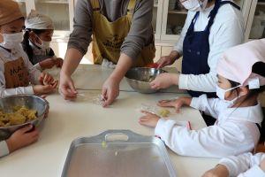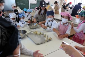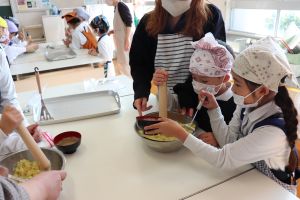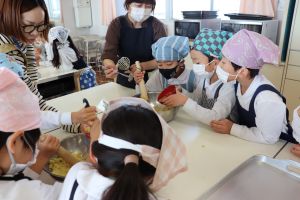 14日の金曜日には、1.2年生がさつまいも料理「茶巾しぼり」に挑戦しました。
