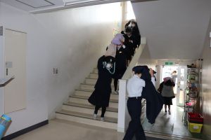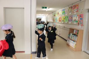 今回は保育所の年長組さんも避難してきていました。6年生と一緒に3階まで避難しました。