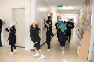 地震発生時や避難場所までの避難行動は、どの学年も理解し正しく行えていたようです。
