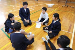 6年生が5年生にいろいろとアドバイスを行っていました。