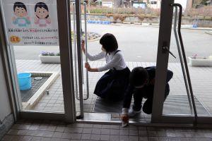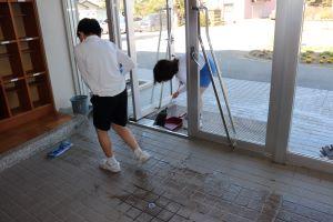 6年生や保護者の方、来賓の方をお迎えする玄関をきれいにしています。