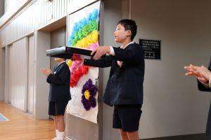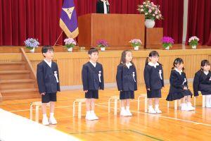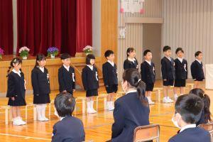 在校生の1年生から5年生が、お世話になった6年生に送別の言葉を送りました。