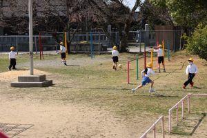 今日の昼休みは、お天気も良く、春らしい陽気に誘われて、子供達が運動場に出ていきました。