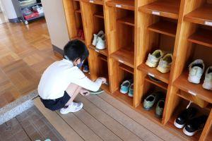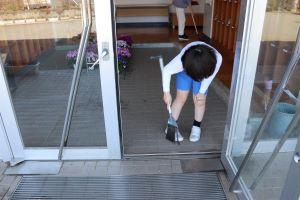下駄箱の中も一つ一つミニボウキで掃いています。