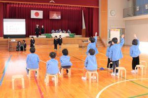 今日は、春から1年生となる保育園年長さんを迎えて、「新1年生を迎える会」を行いました。