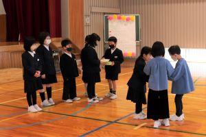 最後は、1年生から年長さんに、プレゼントです。