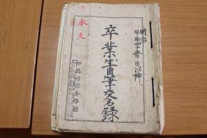 中島小では、明治45年の中島尋常小学校時代から続く卒業生が「卒業生自筆交名録」に名前を残していく伝統行事があります。
