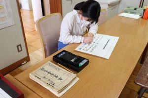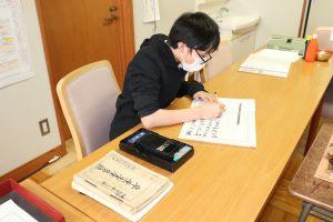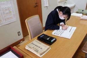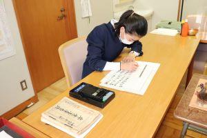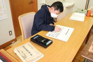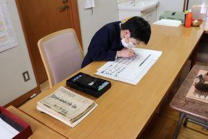 昨日に引き続き、今日も一人一人校長室に来て、私(校長)が見守る中、真剣な面持ちで、一筆一筆丁寧に書き上げました。