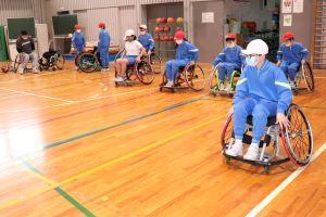 全員で車椅子バスケのゲームをしました。