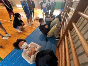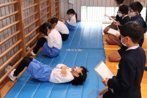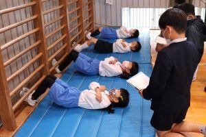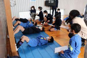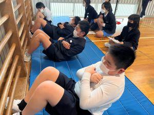 今回は2学期の上体起こしの測定を行い、個人の1学期からの記録の変化を知るとともに、チームごとに体幹の強さ比べをします。