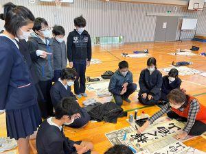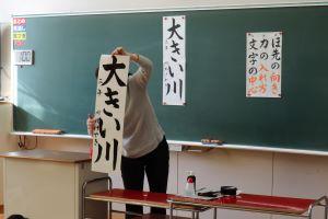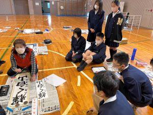 今日は、町の先生(山本先生)に書き初めの指導に来ていただきました。