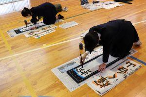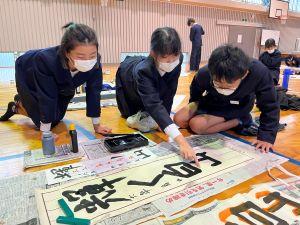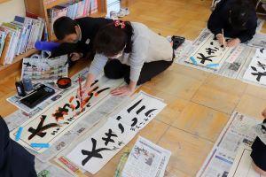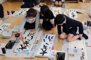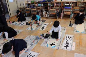 6年生は、書き初めで「輝く白山」を書きます。