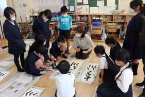 今日は引き続き、町の先生(山本先生)に3年生の書き初め指導をしていただきました。