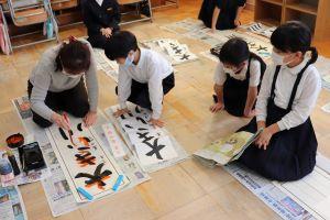 今日教えていただいたことに気をつけながら、書き初め本番まで、たくさん練習しましょう。