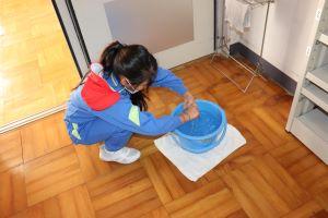 いつもはカラ拭きしている床も、今日から水拭きします。