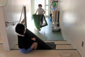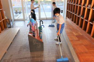児童玄関も、隅々まできれいに水拭きします。