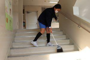 階段は、1段1段丁寧に、掃いていきます。