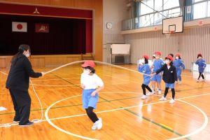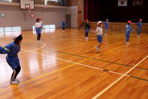 体育館で、縄跳び練習をしていました。