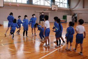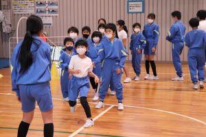 タイミングよく入れるように、高学年の子が優しく低学年の子の背中を押してあげたり、