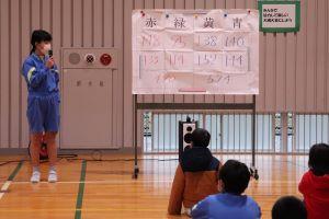 15日の大縄大会に向けて、これまでの練習の成果を見せ合う中間発表です。