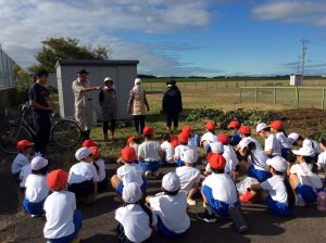 いいお天気の中、地域の方が先にさつまいものつるを除いたり、マルチを外してくださったりなど下準備をしてくださいました。