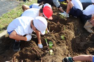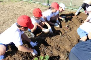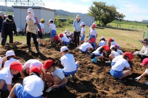 3連休明け、1.2年生は、さいまいもを掘りました。