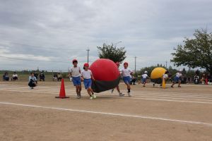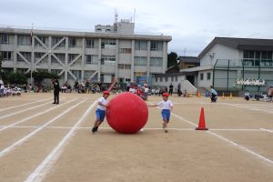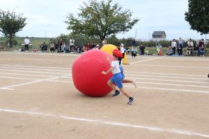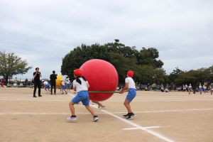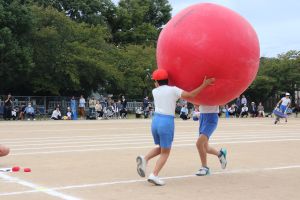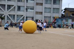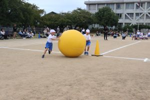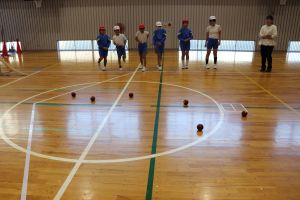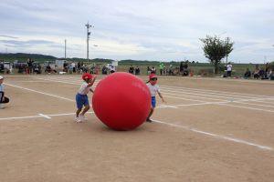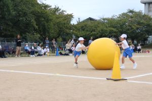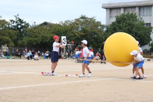 1.2年生の体と同じくらいの大きさの大玉を転がします。