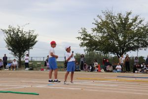 田中選手の投げたカラーボールがジャックボールに近いため、赤の4年生が連続して「ランプ」を使って転がします。