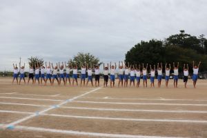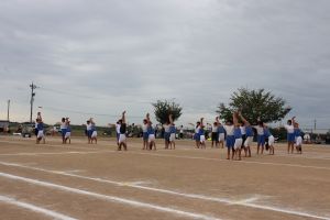 1.2年生の団体演技「勇気100% ミセスでノリノリ」