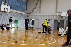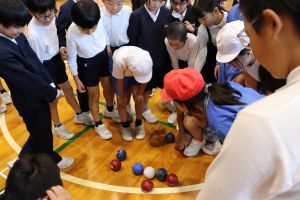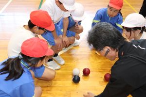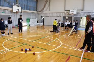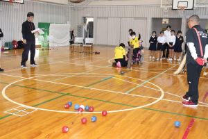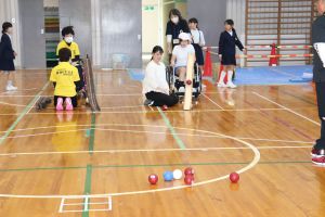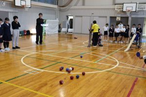 明日の学校公開では、体育館でボッチャ体験ができます。