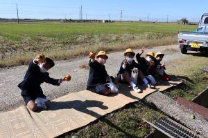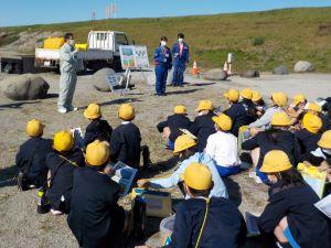 昨日、町内の3つの小学校の5年生が集まり、手取川河川敷で水防学習を行いました。
