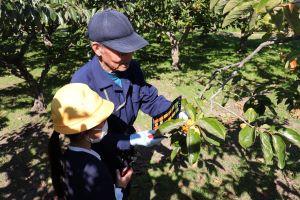 今回は収穫した柿をそのままいただけるので、「すぐに食べる」のに適した柿を収穫します。