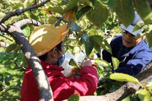 柿の色をよく見て、ちょうどよい熟れ具合のものを探します。