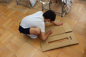 こちらは、段ボールを使い、形に切り、絵を貼り付けています。