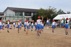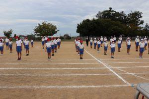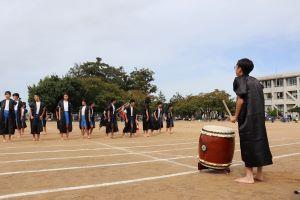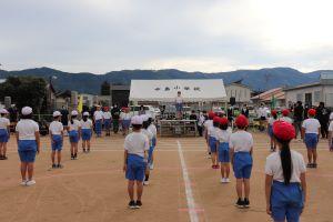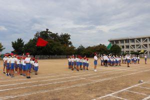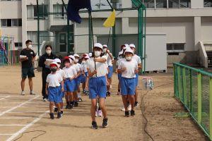 低学年から順に、応援団長の号令に合わせて入場し、開会式がスタート。