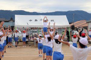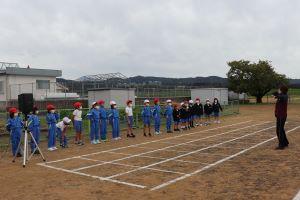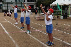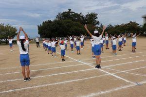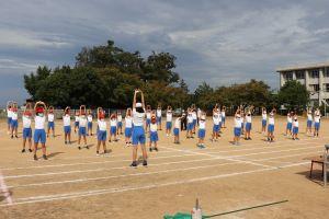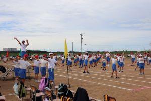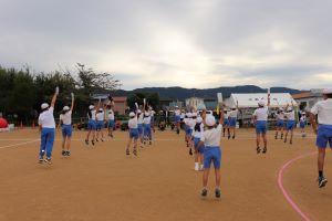 競技上の注意を確認後、体育委員が司令台に立っての準備体操です。