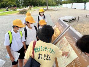 観光ガイドボランティアのまいどさんの説明をもとに、金沢の歴史や文化について知識を深めました。