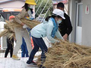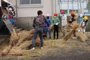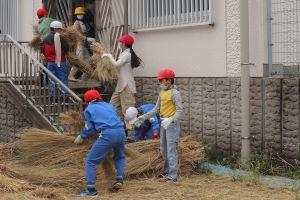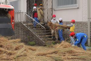 そのつど、機械から藁が出てくるので、子供達が運びます。