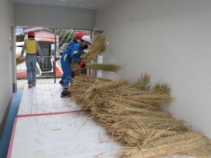 藁は、1月に予定されている左義長に使うので、プールの渡り廊下に保存しておきます。