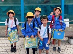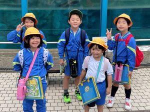 1年生は、毎朝、地域の見守り隊の方に見守られて集団で登校しています。