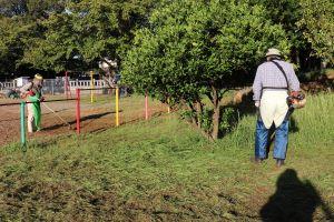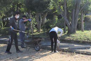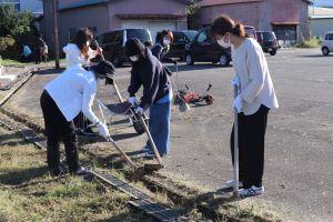 運動場の隅の方も、きれいにしています。