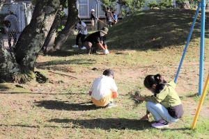子供達は、運動場の草むしりに頑張っています!